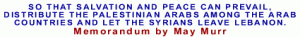 So that the salvation and peace will prevail, distribute the Palestinian Arabs among the Arab countries and let the Syrians leave Lebanon!! – By...